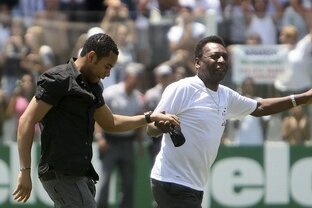 La prezentarea oficială în faţa propriilor suporteri, atacantul de 26 de ani a fost însoţit de celebrul Pele, conaţionalul lui Robinho fiind şi el un simbol pentru clubul sud-american.