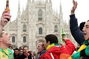 Fanii englezi deplasaţi la Milano, să le susţină pe Manchester United şi pe Chelsea în "optimile" Ligii, nu resimt deloc criza financiară
