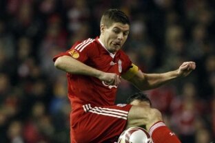 min 19 - Riera centrează perfect de pe stînga pentru Gerrard, care trimite cu capul pe lîngă