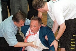 S-a răzgîndit însă, iar sîmbătă dimineaţă a trimis un fax prin care-şi anunţa prezenţa. "E adevărat. Delegaţia austriacă are douăzeci de persoane, iar şeful delegaţiei va fi domnul Prokop", a declarat preşedintele Oltchimului, Ioan Gavrilescu. "Va trebui să luăm măsuri speciale. Am fost anunţaţi şi de la federaţia europeană că domnul Prokop va veni. Va trebui să nu-l lăsăm să stea în spatele băncilor tehnice, datorită faptului că e suspendat", a adăugat Gavrilescu. Oficialul Oltchimului a încheiat cu o glumă. "Nu putea lipsi de la meci. A aflat că e ziua mea duminică şi va veni să mă felicite!" :D