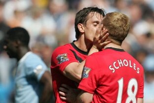 Trupa lui Alex Ferguson nu renunţă deloc la lupta cu Chelsea pentru campionat şi s-a apropiat la un singur punct de liderul londonez, după triumful cu City în derbyul oraşului Manchester. Jucat pe terenul echipei lui Roberto Mancini, meciul a fost decis în ultimul minut al prelungirilor, exact ca în tur, de golul lui Scholes!