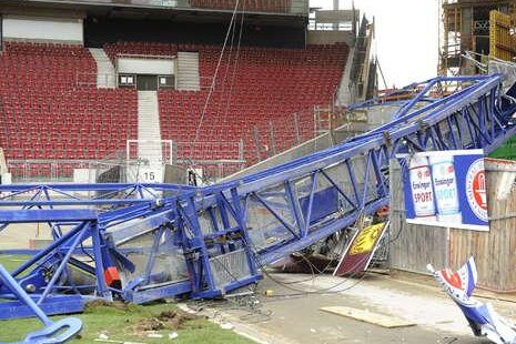 Operatorul de 31 de ani, prăbuşit sîmbătă în gol de la 13 metri o dată cu macaraua pe care o manevra, e român, la fel ca destui muncitori angajaţi la modernizarea arenei unde joacă Marica.