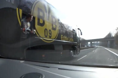Mijlocaşul Nuri Sahin, aflat la uşa din faţă a autocarului, a şutat într-un pilon al unui pod, iar portarul Weidenfeller, aflat la uşa din spate, prinde mingea. Totul s-a întâmplat în timp ce autocarul mergea pe autostradă.