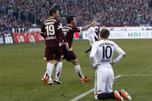 Bayern Munchen a pierdut al treilea meci consecutiv, de data aceasta în faţa lui Hannover (1-3), după ce săptămîna trecută îşi plecase capul în disputele din Bundesliga cu Dortmund (1-3) şi din semifinala Cupei Germaniei cu Schalke (0-1).