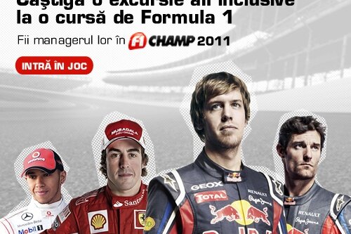 Automarket.ro te provoacă şi în acest an să-ţi demonstrezi perspicacitatea şi abilităţile în F1 Champ, singurul manager de Formula 1 de pe internetul românesc. Concursul a ajuns în acest an la cea de-a cincea ediţie şi se desfăşoară după aceleaşi reguli ca şi anul trecut, oferindu-ţi posibilitatea de a-ţi arăta capacitatea de a anticipa rezultatele Marilor Premii.