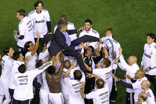 "The Special One" a pus mîna pe primul trofeu cu Real, demonstrînd la interval de patru zile cum se poate ţine în şah 90 de minute cea mai bună echipă din lume. Şi cum să aplici lovitura mortală în prelungiri, după o repriză secundă şi încă un supliment de un sfert de oră în care adversarul a avut aproape 80 la sută posesia mingii. Presing fără limite, sacrificiu şi forţa grupului contra tiki-taka. Un stil contestat de fostele glorii madrilene şi ironizat de marele guru catalan Cruyff. Căruia Mourinho, calificat "antrenor de trofee", a vrut să-i dea peste nas prin rezultatul de pe "Mestalla":