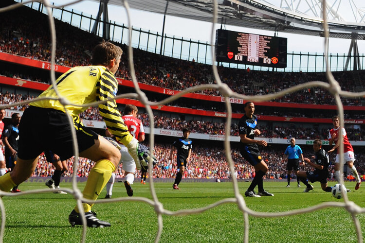 După pauză, United are o mare ocazie, dar Szczesny a scos lovitura liberă executată de Rooney. Arsenal domină, însă ajunge greu în careu, resimţind absenţa lui Fabregas. Cînd a reuşit,a lovit letal. Servit de Van Persie, Ramsey a plasat mingea lîngă bară (57), fără speranţe pentru Van der Sar. Gazdele se retrag, terenul se înclină spre careul londonez. Szczesny a blocat şuturile lui Rooney şi Nani, dincolo Van Persie a ţintit plasa laterală. Intră şi Berbatov. Dar United suferă la mijloc şi "tunarii" pot profita de spaţiile libere. Rămîne 1-0: Arsenal este la 6 puncte şi mai speră.