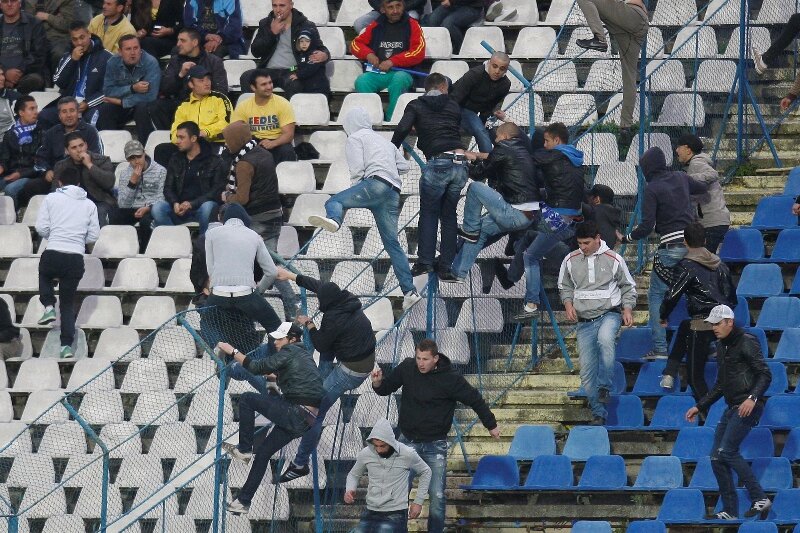 Finalul jocului pierdut cu Dinamo (0-2) a încins spiritele în tribuna stadionului Ion Oblemenco. Văzînd că echipa lor este învinsă şi cu şanse minime să mai rămînă în prima ligă, fanii gazdelor au încercat să se războiască cu galeria dinamovistă, în timpul meciului, pentru ca la final să arunce cu torţe la ieşirea de la tribuna oficială.