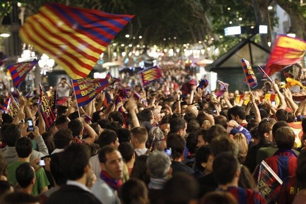 12.000 de persoane s-au adunat în centrul Barcelonei, între Piaţa Catalunya, Ramblas şi străzile adiacente, pentru a sărbători titlul câştigat de echipa favorită.