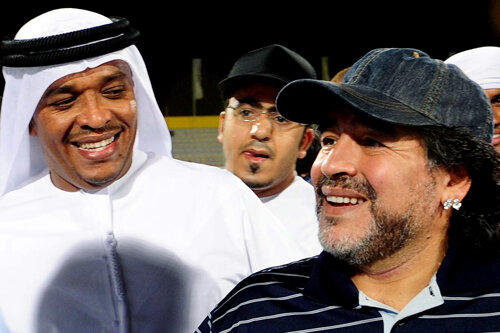 Diego a făcut sîmbătă o vizită la club, unde a inspectat baza de pregătire, "un adevărat paradis", i-a salutat pe jucători şi a negociat cu şeicii. Mai precis, le-a pus condiţiile sale, între care cea mai importantă a fost "să mi se accepte stafful cu care am lucrat şi la Mondiale".