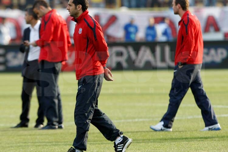 Ambii au vorbit separat cu Andone timp de cîteva minute, aceştia primind ultimele indicaţii înainte de marele derby. Pe gazon sînt prezenţi şi Diabate şi Dolha, cei doi nefiind însă incluşi în lotul pentru finală. La scurt timp după intrarea pe teren a dinamoviştilor, steliştii au ajuns şi ei pe gazon.