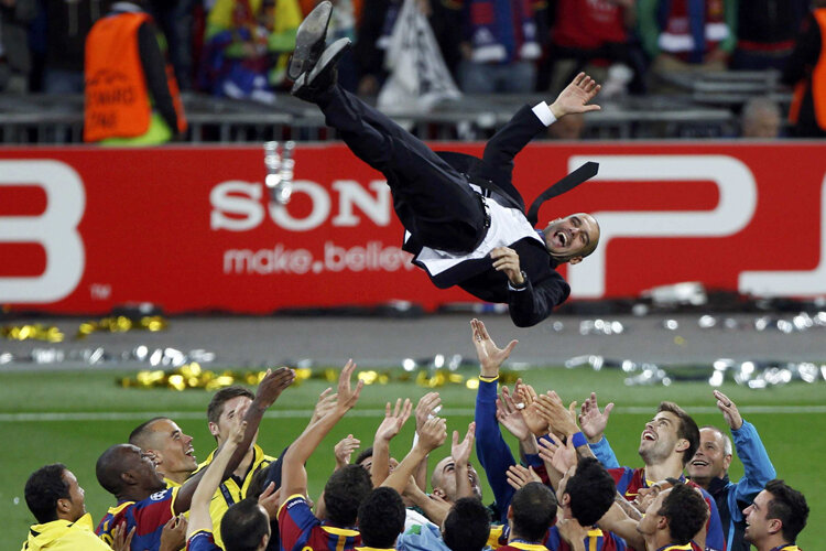 Pentru că Pep a preluat din mers o trupă deja formată de către predecesorul său olandez, a păstrat stilul ofensiv, a sudat relaţiile de joc şi a dat credit total celor crescuţi în propria pepinieră, implantînd pe posturile vulnerabile piesele potrivite. N-a făcut o echipă fără defecte, dar a reuşit să breveteze tiki-taka. Un joc aparent simplu, dintr-o atingere, uneori lent şi alteori rapid, care irită şi slăbeşte orice adversar. Pase scurte, triunghiuri şi acţiuni în valuri distrugătoare finalizate de aproape toţi jucătorii.