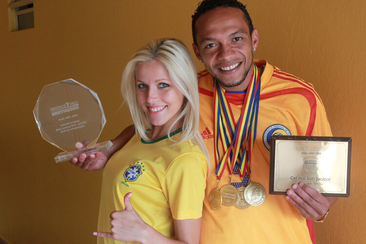 Fotbalistul în vîrstă de 28 de ani s-a pozat în tricoul echipei naţionale a României, cu premiile şi medaliile cucerite la noi în ţară, postînd fotografiile pe contul său de Facebook. În acelaşi timp, prietena sa româncă a îmbrăcat tricoul Braziliei.