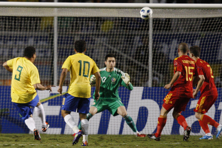 România a expediat doar patru şuturi spre poarta Braziliei, cîte două în fiecare repriză. În prima parte, Gabi Mureşan a încercat poarta din lovituri libere de la 30-35 de metri. În minutul 25, mijlocaşul de la CFR Cluj a zguduit transversala. În repriza secundă, au căutat golul Cristi Tănase (şut peste) şi Torje (şut de la distanţă respins de portar).