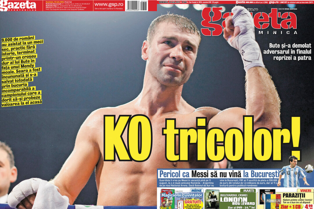 PLUS: Gazeta Sporturilor pregăteşte o ediţie specială cu victoria lui Bute care va fi distribuită în Piaţa Constituţiei, la concertul Jon Bon Jovi din Bucureşti. De asemenea, mîine la tarabe puteţi găsi un număr special al ziarului, dedicat tuturor dezbaterilor fierbinţi legate de performanţa lui Bute.