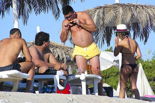 Motiv să respire uşurat, nu mai trebuie să lupte cu kilogramele în plus. Cel mai iubit "grăsuţ" din lume s-a relaxat în vacanţă pe o plajă din Ibiza, alături de mama sa şi de soţie. Cel mai bun "9" din istoria fotbalului mondial şi-a expus, cu mîndrie, burtica.