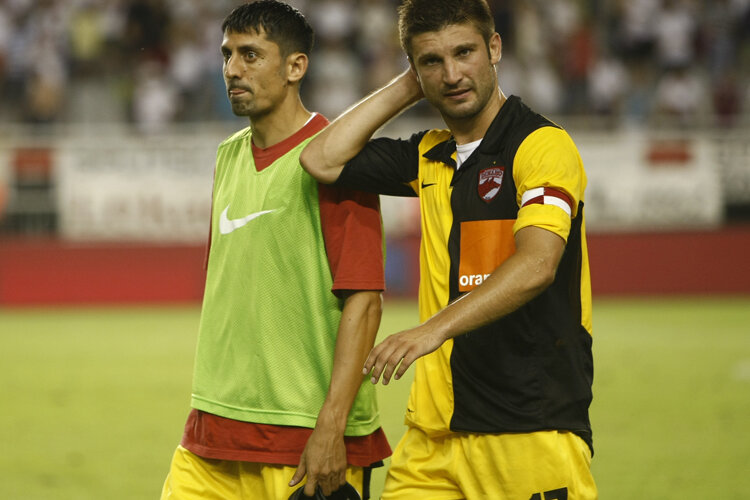 Ionel Dănciulescu şi Andrei Cristea la finalul partidei cu Hajduk, de la Split