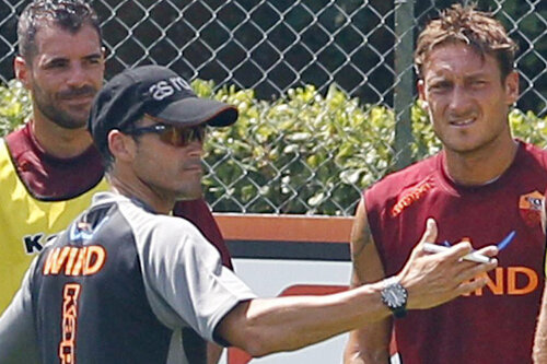 Concret, joi, în play-offul Europa League cu Slovan (0-1), şi-a permis să-l "uite" pe Totti pe bancă pînă-n minutul 72. Acesta s-a supărat atît de tare încît nici nu l-a mai băgat în seamă de atunci, iar la primul antrenament, sîmbătă, a apărut cu un tricou pe care scria "Basta!" ("Ajunge!").