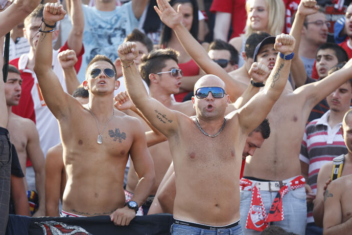 Cîţiva dintre suporterii români de la tribuna a II-a a Stadionului Dinamo au avut o altercaţie cu ziariştii ucraineni prezenţi la meciul din returul play-off-ului Ligii Europa după ce jurnaliştii şi-au manifestat bucuria la golul marcat de Januzi.