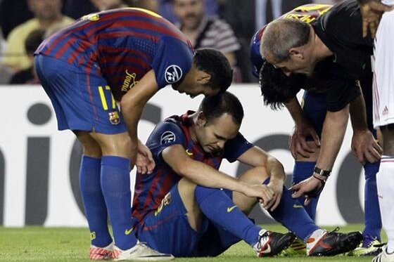 Situaţia se repetă cu Iniesta. Victima unei rupturi la muşchiul biceps al piciorului stîng în duelul cu Milan, Andres aflase că va fi indisponibil o lună. Medicii i-au recomandat însă să nu se grăbească, ci să reintre după 6 săptămîni, ca să nu existe nici un risc. Astfel, el nu va pierde 5 partide, ci 7.