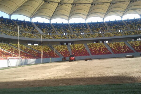 Primele rulouri de gazon au fost deja montate pe Naţional Arena. Vezi AICI o galerie foto