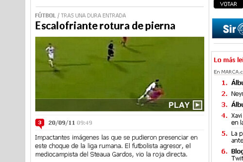Accidentarea suferită de gorjeanul Cosmin Băcilă la partida Steaua - Pandurii, scor 1-2, a ajuns şi pe site-ul cotidianului spaniol Marca.
