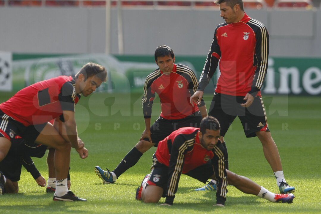 Benfica, vicecampioana Portugaliei, a ajuns aseară la Bucureşti pentru al doilea meci din grupele Ligii Campionilor, împotriva Oţelului Galaţi. Lotul portughezilor a efectuat în această dimineaţă primul său antrenament pe noul gazon instalat pe Naţional Arena. Vestea bună e că terenul rezistă şi avem şanse mari ;) să nu ne mai facem de rîs, ca la meciul de coşmar din acest punct de vedere, România - Franţa (0-0).