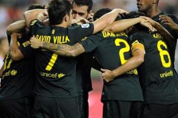 Barcelona, la rîndu-i, a jucat tot "afară", la Gijon. N-a putut folosi tricourile blaugrana, în condiţiile în care gazdele au mers pe roşu-alb, aşa că a apelat la noul echipament de deplasare, negru complet.