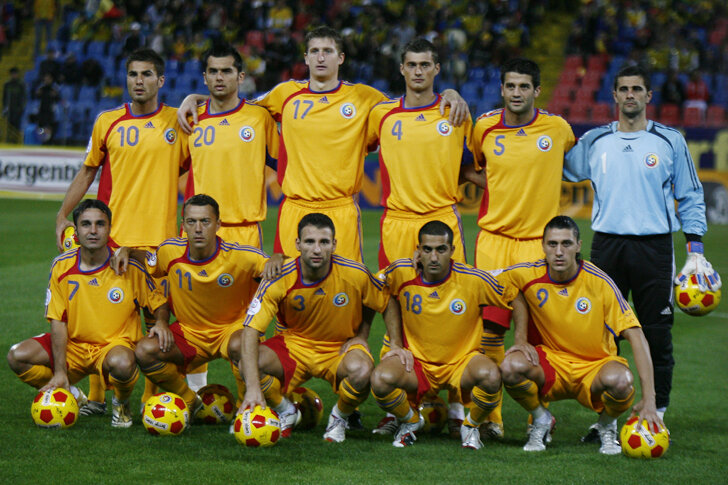 Echipa României din meciul cu Belarus din 2006: Mutu, Dică, Goian, Tamaş, Chivu, Coman (sus), Fl. Petre, Roşu, Raţ, P. Marin, Marica (jos)