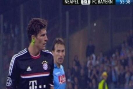Din momentul în care şi-a pregătit balonul şi pînă a executat lovitura de pedeapsă, Mario Gomez a fost sîcîit de fanii lui Napoli cu un laser. Urmarea? A tras slab, telefonat, permiţîndu-i portarului De Sanctis să blocheze balonul fără probleme.