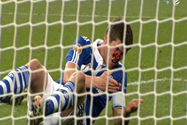 Echipele germane dau totul pe teren, poate şi datorită acestei atitudini stadioanele nemţilor gem de spectatori la fiecare partidă. Din păcate pentru jucători, atitudinea din timpul jocurilor le aduce acestora şi accidentări grave. Miercuri a fost faza în care Schweinsteiger şi-a fracturat clavicula şi va sta cîteva săptămîni departe de gazon. Aseară a fost rîndul colegului lui Marica, olandezul Huntelaar, să iasă accidentat grav.