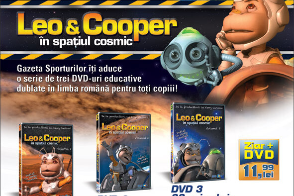 Aventura în Univers continuă! Leo şi Cooper în spaţiul cosmic este un nou desen animat, adus de producătorii lui Kemy Curiosul şi lansat în premieră în România împreună cu Gazeta Sporturilor. De azi, la toate chioşcurile de ziare poate fi găsit, împreună cu ziarul, la preţul de 11,99 lei, al treilea şi ultimul DVD al seriei!