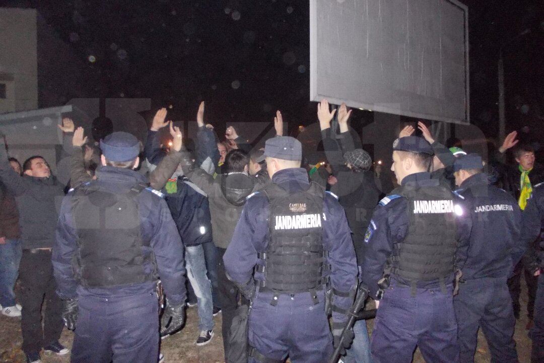 Imediat s-a iscat un scandal intre reprezentantii fortelor de ordine si suporteri, iar spiritele erau aproape sa degenereze (Vezi foto mai jos).