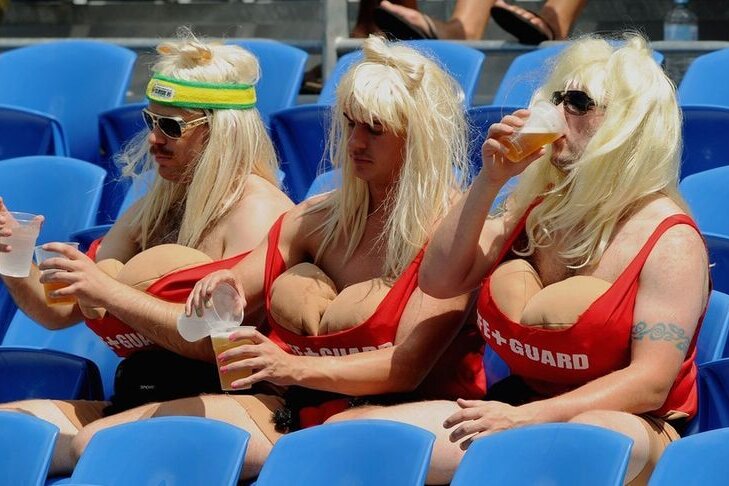 În Australia, pentru fani prezenţa la competiţiile de rugby în 7 este un prilej de distracţie. Pe lîngă meciurile în sine, spectacolul este prezent din plin în tribune, acolo unde spectatorii fac orice ca să atrage privirile.