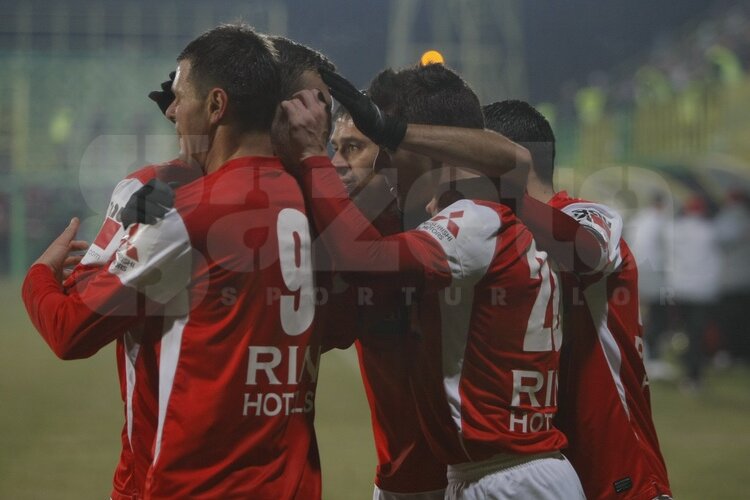 Prima mare ocazie a venit abia în minutul 26. Rus a şutat puternic de la 20 de metri puţin pe lîngă poarta lui Coca. Peste doar 4 minute, Rus şi-a preluat excelent o pasă de la Alexe şi a deschis scorul cu un şut cu stîngul din interiorul careului.