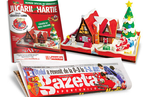 Ajută-l pe copilul tău să coloreze, să decupeze, să lipească şi să se distreze! Căsuta lui Moş Crăciun, la un preţ excelent: ziar şi jucărie din hîrtie la doar 7,99 lei! De joi, 8 decembrie, numai cu Gazeta Sporturilor!