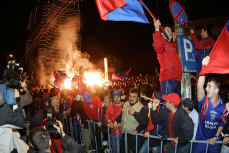 Steliştii aşteaptă confruntarea din această seară cu AEK Larnaca precum o mare finală. O calificare în primăvara europeană este considerată de Bradan şi compania prilejul perfect pentru a scoate lumea în stradă. Fotbaliştii au planul făcut: "Dacă ne vom califica, întîi vom sărbători cu cei 50.000 de fani de pe stadion. Apoi, vom merge la Universitate, acolo unde cu siguranţă lumea va veni să fie alături de noi!".