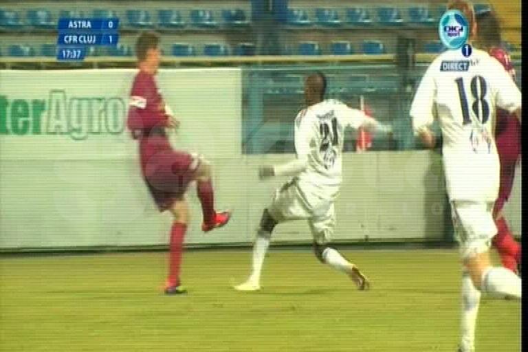 În minutul 17, la o acţiune a Astrei pe partea stîngă, mijlocaşul lui CFR Cluj, Renan Garcia, a oprit mingea cu mîna în propriul careu, sub privirile atacantului Kehinde Fatai.