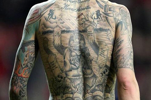 Teoria fostului mijlocaş de la Manchester United este foarte uşor de demonstrat. Un număr foarte mare de fotbalişti apelează la tatuaje. Majoritatea aleg unul singur şi nu foarte mare, însă sunt şi jucători care epatează.