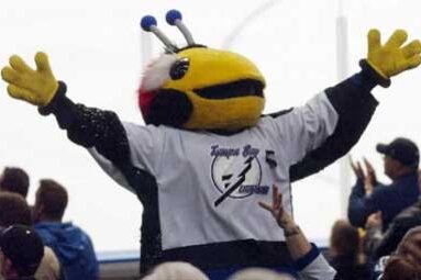 Există multe motive pentru care suporterii sînt daţi afară de pe stadioane sau din sălile de sport, dar fanul unei echipe de hochei a fost autorul unei premiere. În timpul meciului dintre Tampa Bay Lightning şi Boston Bruins, mascota gazdelor, Thunderbug, l-a stropit pe un fan advers cu un spray cu spumă.