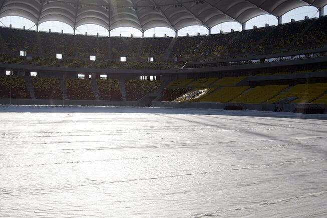 Chiar dacă la noapte se anunţă ger, sub -10 grade Celsius, avantajul terenului de pe Naţional Arena este că nu se pune problema îngheţării datorită sistemului de încălzire.