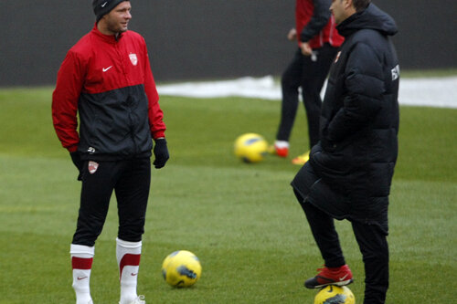 La primul antrenament, "cîinii" au fost impresionaţi de impozanţa arenei, însă gazonul le-a displăcut elevilor lui Ciobotariu. Marius Niculae, singurul dinamovist care a jucat miercuri seară în tricoul roşu al "naţionalei" în amicalul cu Uruguay (1-1), îi avertizase în prealabil: "Terenul nu e extraordinar, din contră, nu e nici tare, nici moale. Iar cea mai importantă chestie, la care trebuie să avem grijă: alunecă mingea incredibil, fuge ca nebuna! Am vrut să-i dau o pasă lui Daniel Niculae, n-am lovit-o foarte tare, dar s-a dus ca din puşcă".