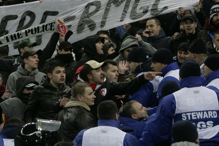 Anunţul a fost făcut de Gabi Blondu, un alt lider de galerie craiovean, care descrie un abuz al forţelor de ordine. "Noi, suporterii care eram în peluză, n-am încălcat nici o lege. Noi de la Craiova am avut o pancartă cu 'Ştiinţa nu moare'. Jandarmii au vrut să ne-o ia, dar nu le-am dat-o.