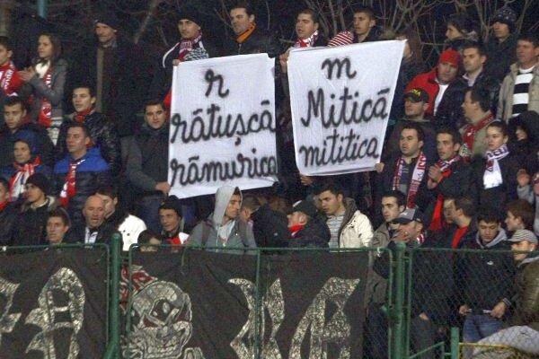 "Mai am un singur dor: Sandu şi Mitică la coafor", a sunat mesajul suporterilor. N-a fost însă singurul, aceştia avînd pregătită şi o poezie: "R, răţuşcă, rămurică, M, Mitică, mititica".