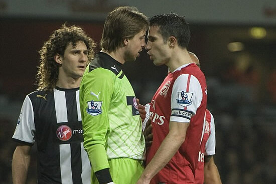 O altercaţie între doi fotbalişti olandezi a condimentat partida dintre Arsenal şi Newcastle. Protagonişti au fost Robin van Persie, golgeterul ”tunarilor”, şi Time Krul, portarul oaspeţilor.
