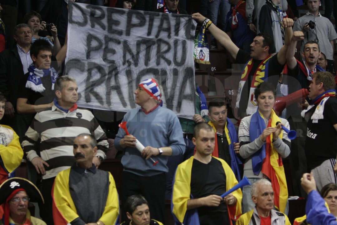 La un moment dat, în sectorul ocupat de români a fost afişat un mesaj de susţinere pentru Universitatea Craiova. "Dreptate pentru Craiova" era scris pe bannerul purtat de suporteri cu fulare alb-albastre la gît.