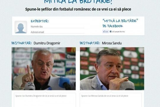 Suporterii continuă să-i conteste vehement pe şefii fotbalului românesc în campania Gazetei "Mitică la brutărie". Oamenii compară fotbalul nostru cu o societate comercială aflată în pragul falimentului şi spun că a sosit momentul concedierii managerilor generali Dumitru Dragomir şi Mircea Sandu pentru incompetenţă.