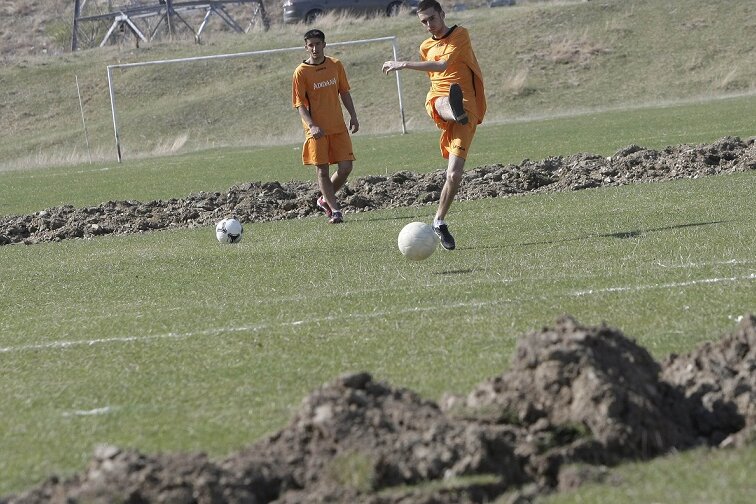 Meciul Cireşu - AS Mioveni din Liga a V-a a trebuit să se dispute la Călineşti, fiindcă rivalii politici pe plan local ai finanţatorului echipei gazdă au stricat terenul de joc cu plugul
