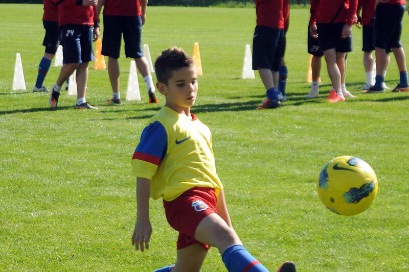 Copilul în vîrstă de 9 ani a fost invitat dimineaţă la FRF, unde s-a întîlnit cu Mircea Sandu, iar după-amiază a mers în Ghencea, s-a schimbat şi a ieşit pe teren alături de Chipciu şi de Tănase.