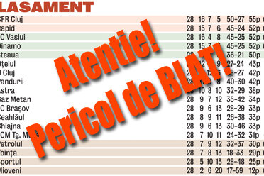 Liga 1 nu scapă de blaturi. Adrian Porumboiu a acuzat făţiş că meciul CFR- Oţelul 2-0 ar fi fost aranjat. Gigi Becali a spus la fel despre Dinamo - Ceahlăul 3-2, Chiajna - Dinamo 1-3 şi Vaslui - Astra 2-1, în timp ce Gheorghe Ştefan şi-a acuzat propriii jucători la înfrîngerea cu CFR, 0- 2, de sîmbăta trecută.